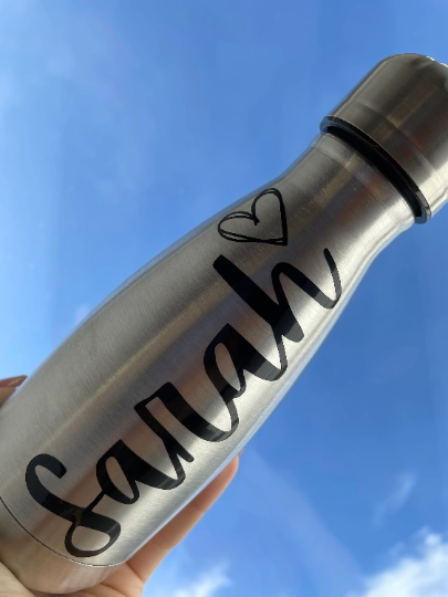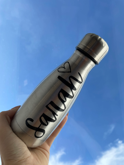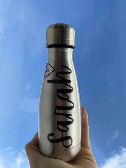 This "thermal water bottle" that we make ourselves can be personalized with the first name and is ideal for tea, coffee, lattes, etc. It's just fun to drink from this personalized water bottle.