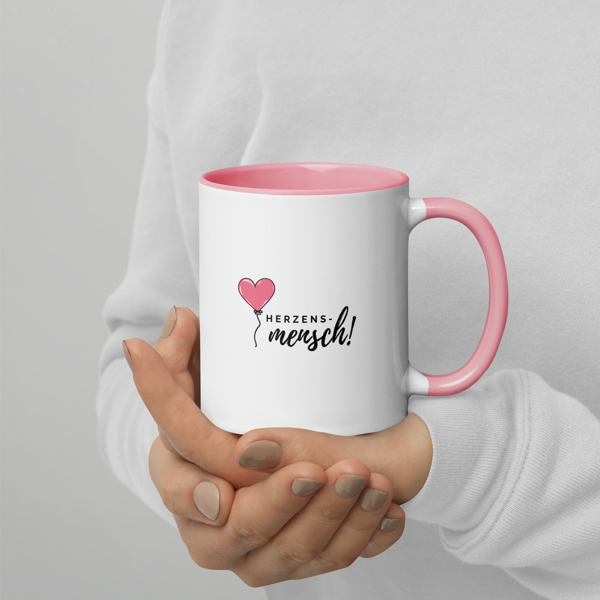 Mug "Heart Person" with pink heart balloon - Valentine's Day gift with pink handle & inside