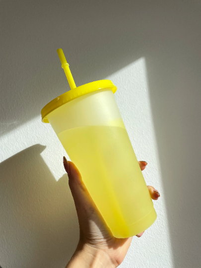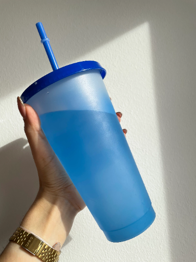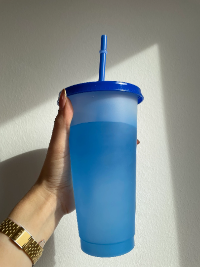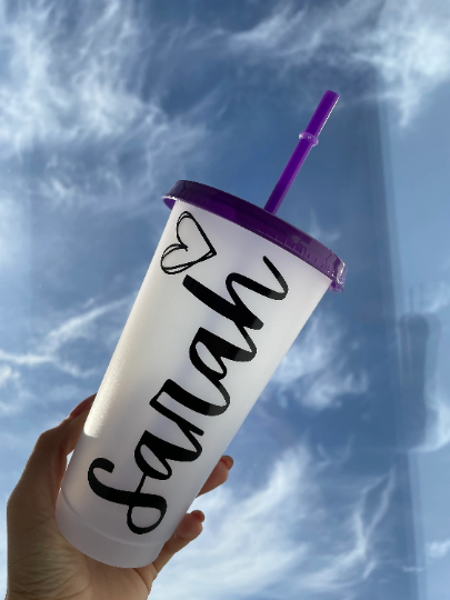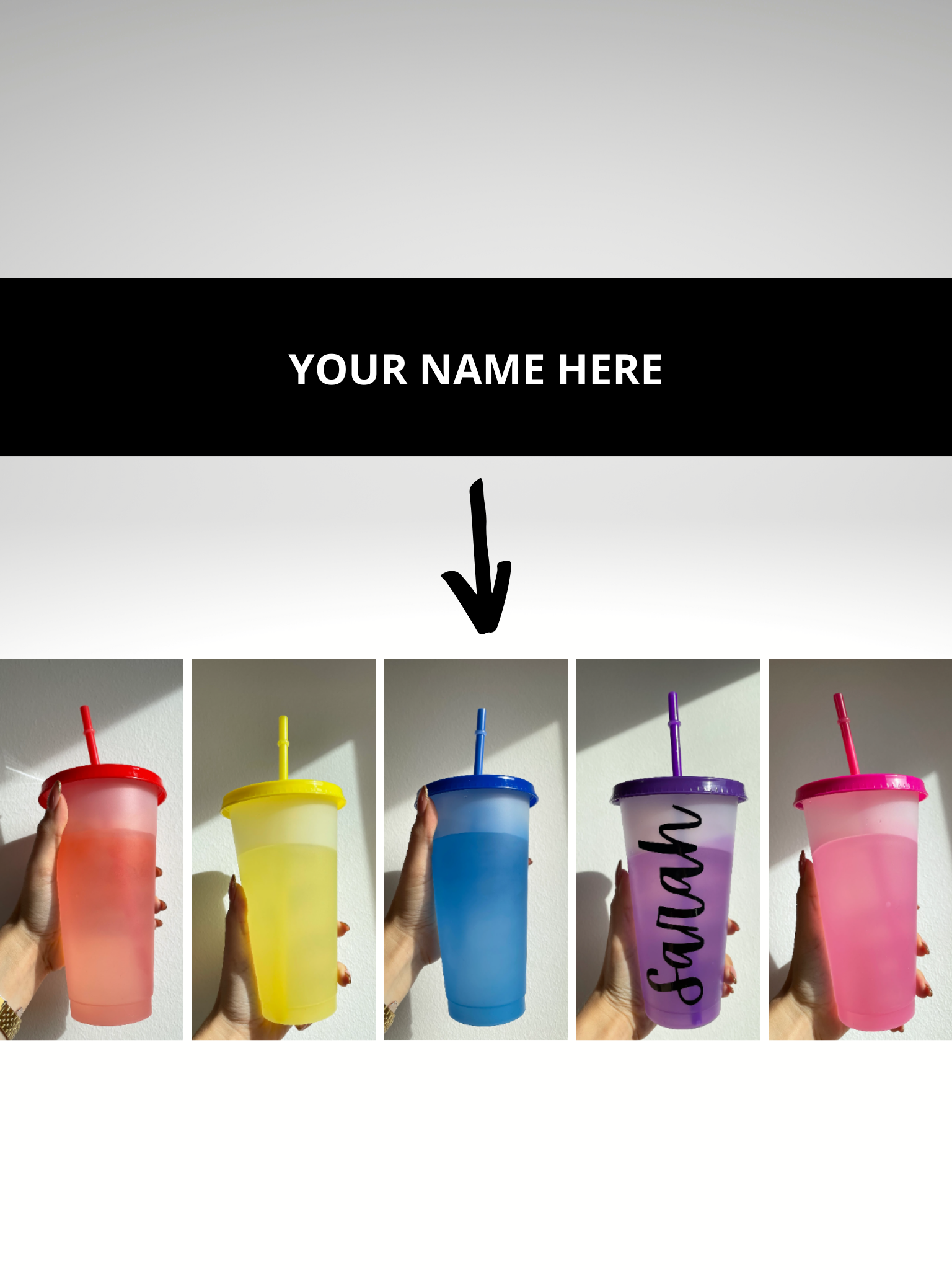 This color-changing "drinking cup" with lid and straw, which we made ourselves, can be personalized with the first name and is ideal for cold drinks. Drinking from this personalized drinking bottle is just plain fun.