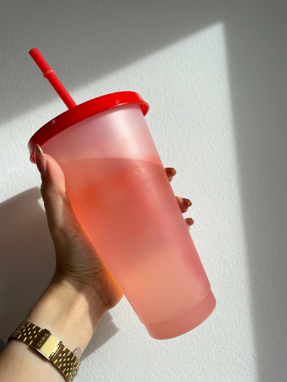 The drinking cup with lid and straw is suitable for swimming pool, beach, picnic, travel or as party supplies and children's cup.