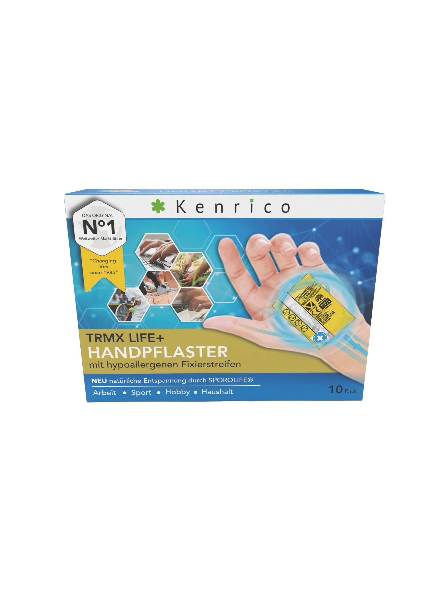 Erleben Sie die wohltuende Wirkung des TRMX LIFE+ Handpflasters von Kenrico®, dem weltweit führenden Hersteller für innovative Pflasterlösungen. Entwickelt zur Unterstützung des Handgelenks, der Handfläche und des Unterarms, fördert dieses Handpflaster mit dem einzigartigen Wirkstoff Sporolife® gezielt die Regeneration und Entspannung nach Belastungen durch Arbeit, Sport oder Alltag.